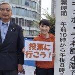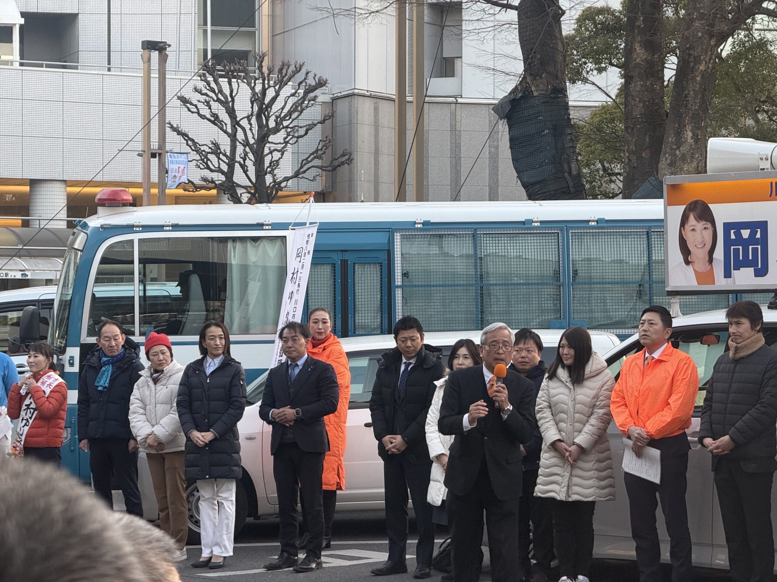 私は朝から出口さんとポスター貼りと4箇所の出陣式に廻りました。