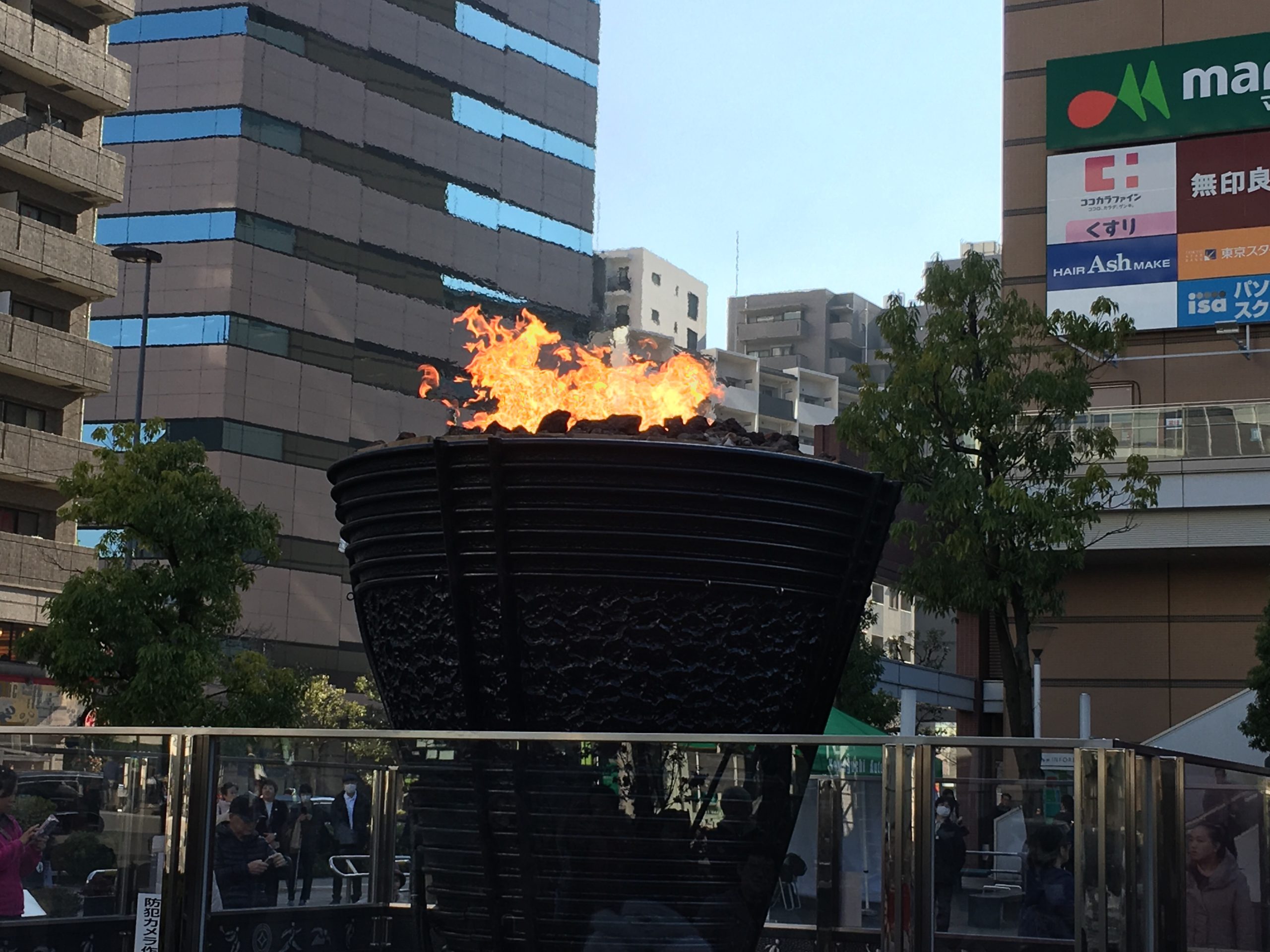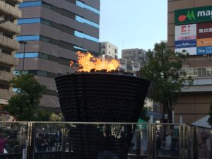 キュポラ広場にて本日午前11時から12時まで川口市の鈴木文吾さんや御遺族が作成した1964年の東京オリンピックの聖火台が灯火されていました。