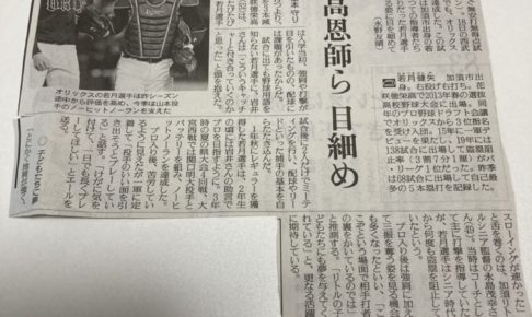 読売新聞に花咲徳栄高校岩井隆監督と共に教え子オリックスバッファローズの若槻捕手の記事が載っていました。 良かったですね。
