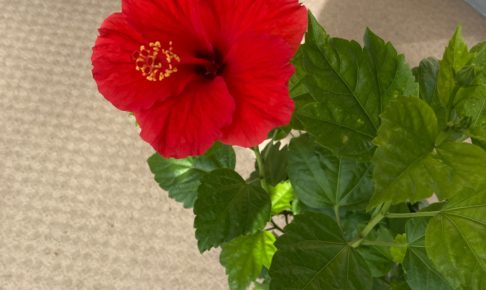 ハイビスカス 荒川さんの養生の手助けを受けて6年目また咲きました。 鉢も土も変えて植え替えました。 嬉しいですね。